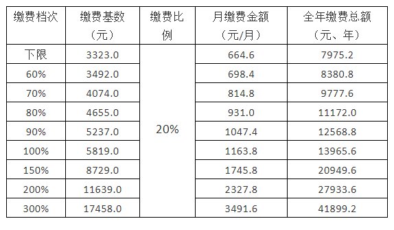 企业职工基本养老保险和失业保险缴费基数下限为3323元/月。