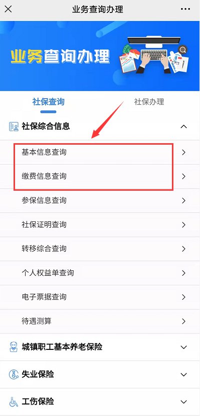 第二步:进入“业务查询办理”页面,点击“社保综合信息”,即可查询基本信息和缴费余额信息。