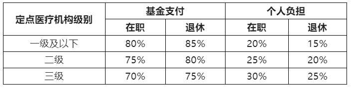 门诊特殊慢性病患者在定点医疗机构门诊发生符合门诊特殊慢性病支付范围的医疗费用,居民医保和职工医保由统筹基金分别按以下比例分担支付。在定点零售药店发生的符合门诊特殊慢性病支付范围的药品费用,按照开具处方的定点医疗机构等级对应的基金支付比例予以支付。
