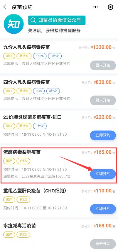 桂林流感疫苗预约流程: