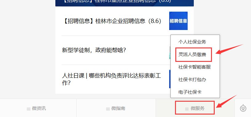 第二步:点击菜单栏“微服务”——“灵活人员缴费”