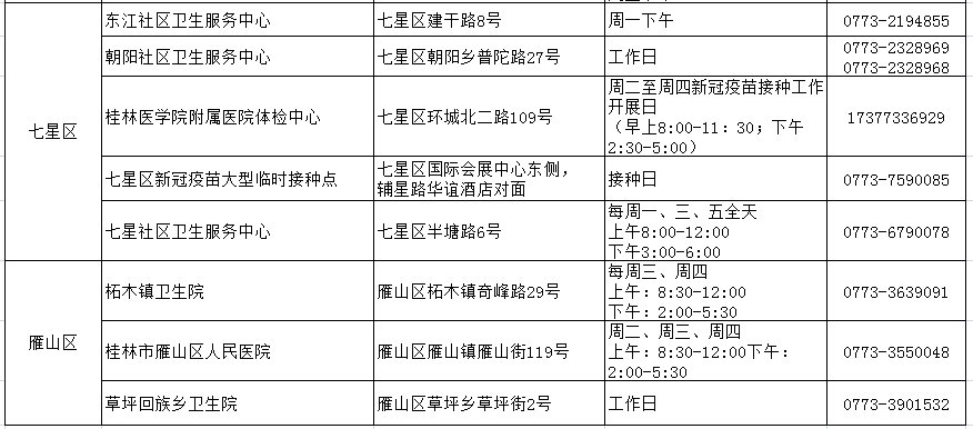 秀峰、叠彩、象山、七星及雁山区范围可开具证明的医疗机构如下图所示。荔浦市、临桂区及十县由辖区疫情防控指挥部指定并公布。