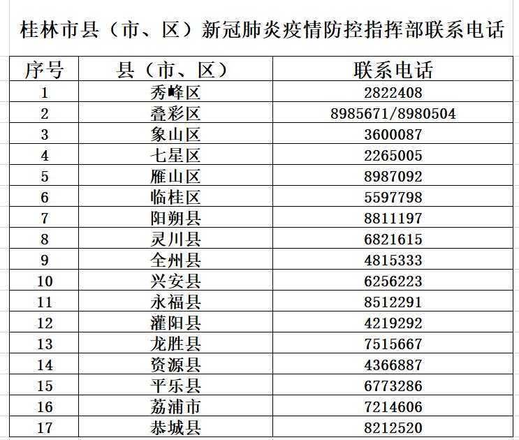 桂林市疫情防控指挥部联系电话