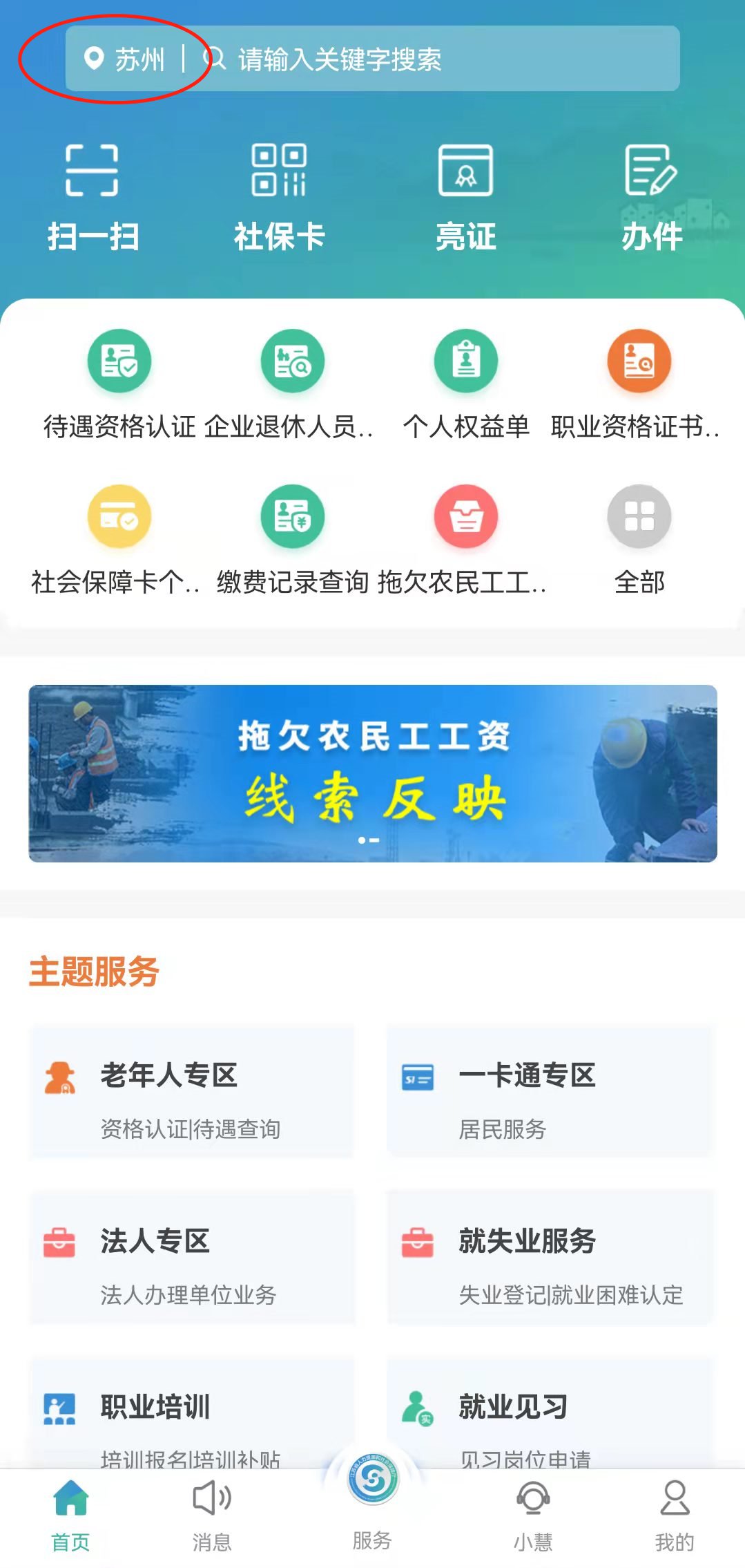 第三步,首页左上角,把地市切换为“苏州市”;