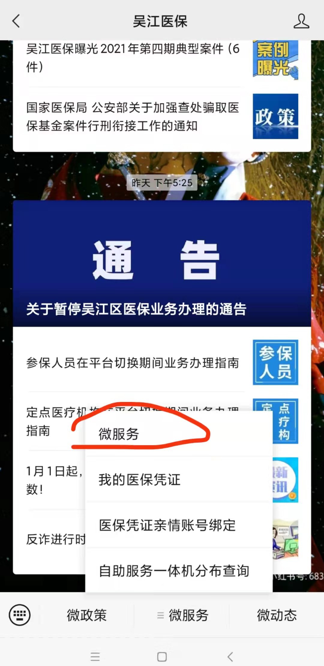 第一步,关注吴江医保微信公众号;