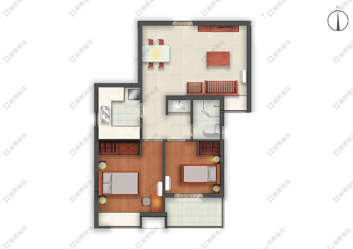 2、两室简单家庭户(小户型)