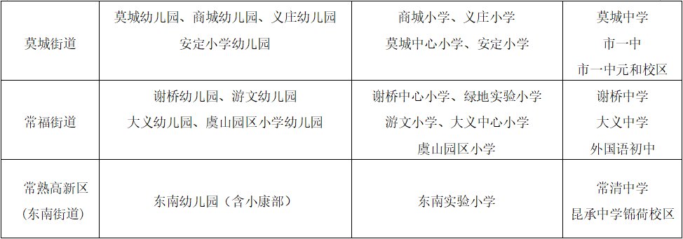 1. 梅李区域(不含珍门、赵市) 新市民申请就读幼儿园,只能在珍门幼儿园或赵市幼儿园中任选一所;申请就读小学可在填报梅李中心小学外再选一所(平行志愿),以分数优先、遵循志愿的方式录取;梅李区域和珍门区域申请就读初中可在梅李中学、赵市中学中填报平行志愿,以分数优先、遵循志愿的方式录取。