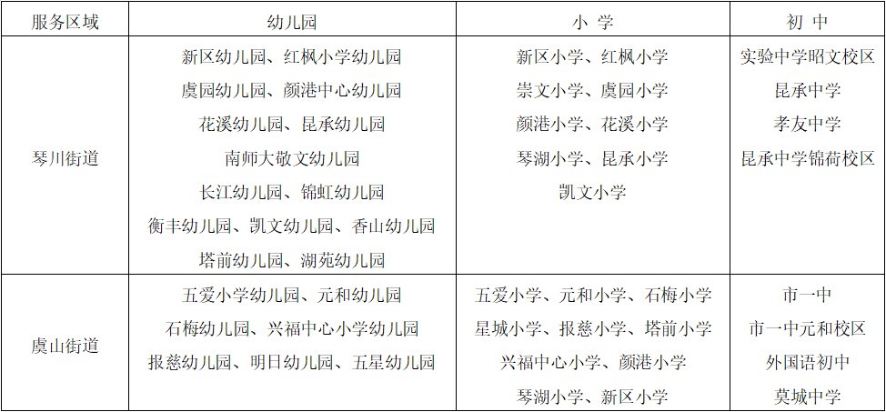 6. 海虞区域(不含福山、周行)新市民申请就读小学,可在海虞中心小学花庄分校、福山中心小学(含徐桥小学)、周行中心小学三所小学填报平行志愿;申请就读初中,可在海虞中学、福山中学、周行中学三所中学填报平行志愿。所有平行志愿,以分数优先、遵循志愿的方式录取。