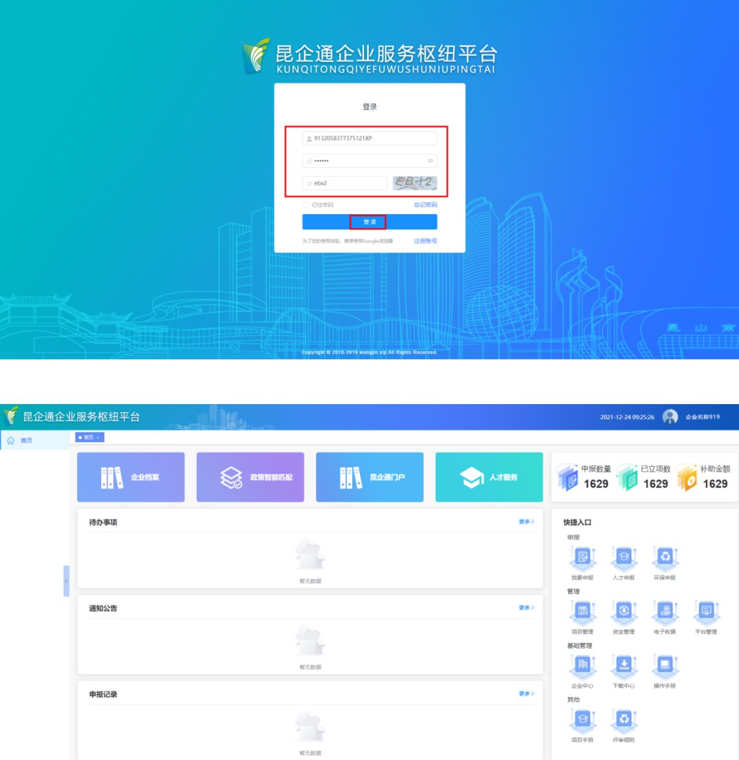 注册完后,在登录页面,输入账号、密码、验证码,点击登录按钮,即可进入系统首页!