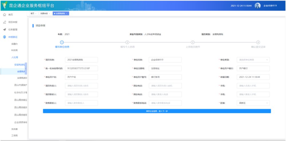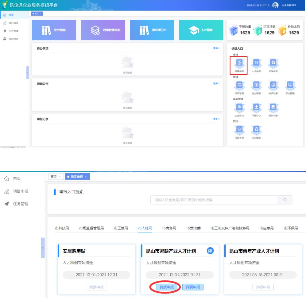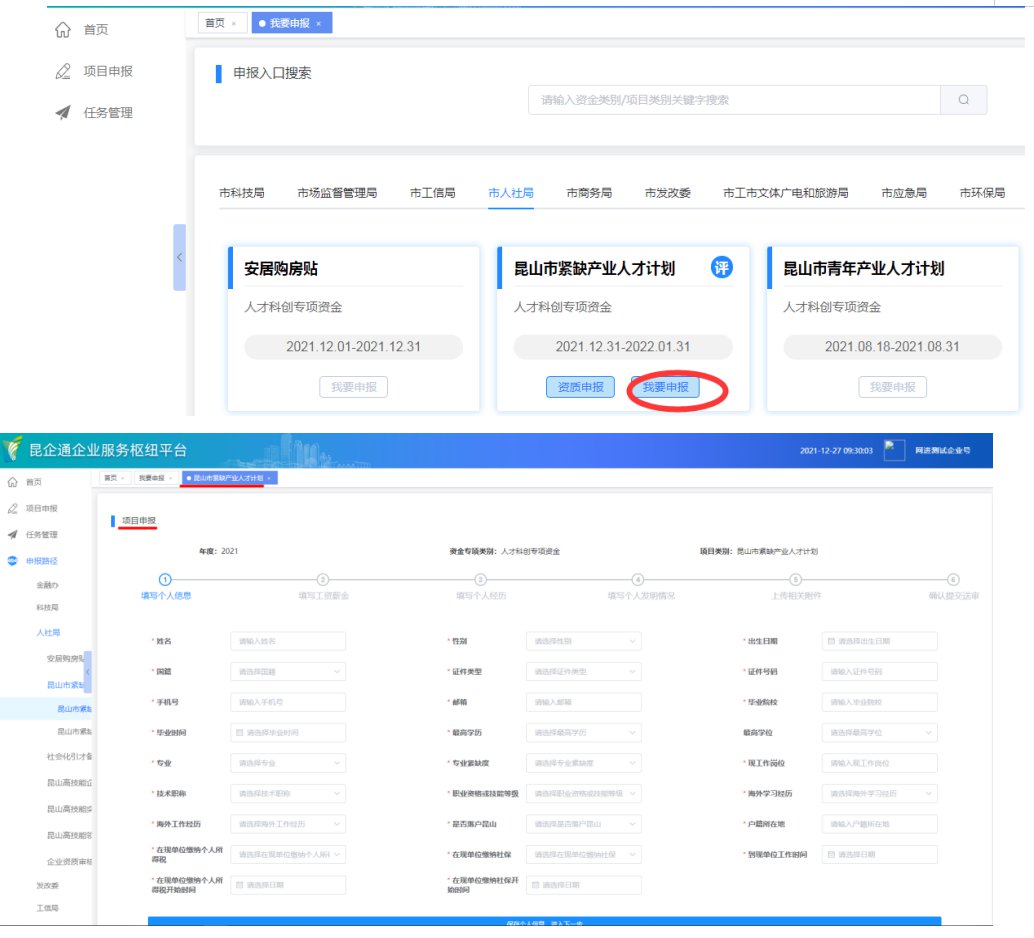 3、审核通过后,进行紧缺产业人才项目的企业资质申报和个人资质申报环节