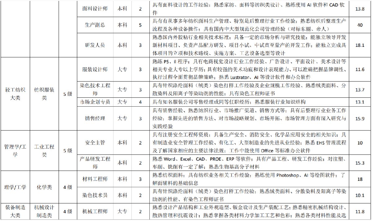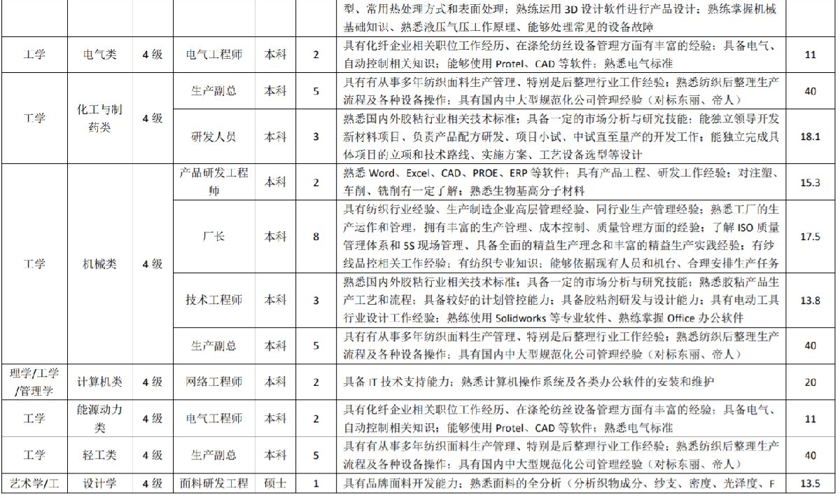 吴江区2021年重点产业紧缺人才需求目录(部分截取):