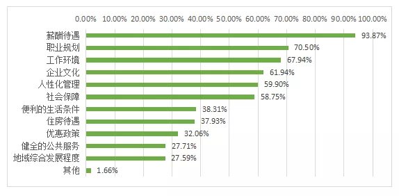 ◎薪酬仍是吸引、激励和留住人才的关键因素。在人才流动方面,个人发展、薪酬原因是导致员工离职的两大最重要因素;在人才引进和保留方面,有93.87%的企业认为薪酬待遇因素是人才引进和保留的最关键因素。