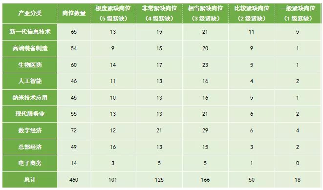 ◎紧缺岗位产业分布:新一代信息技术、高端装备制造、生物医药、人工智能、纳米技术应用、现代服务业、数字经济、总部经济、电子商务紧缺岗位分别为65个、54个、60个、46个、45个、55个、72个、49个、14个。