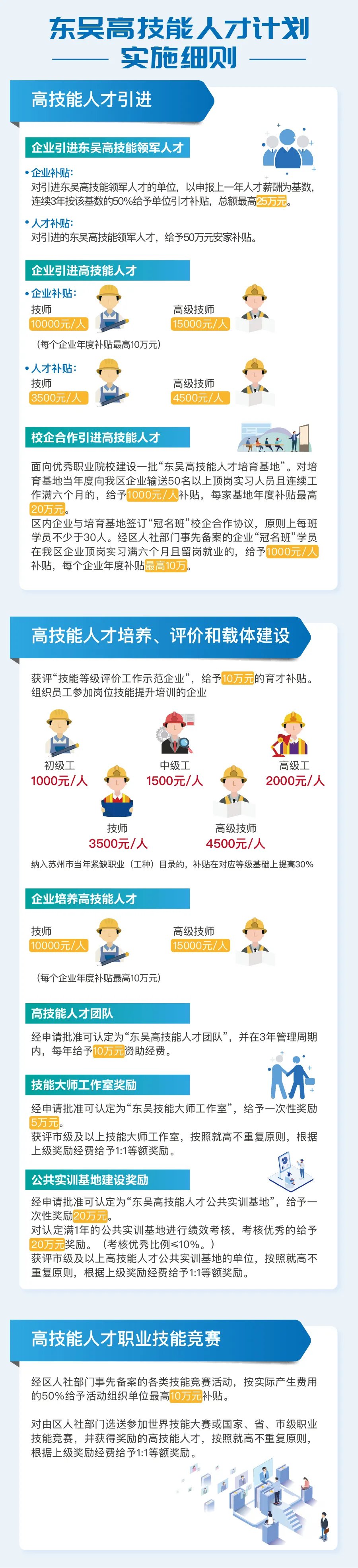 对弓|进的东吴高技能领军人才,给予50万元安家补贴。
