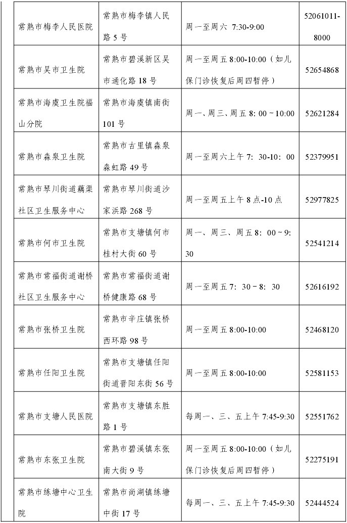 新冠肺炎疫情期间常熟市首批招工体检服务机构名单