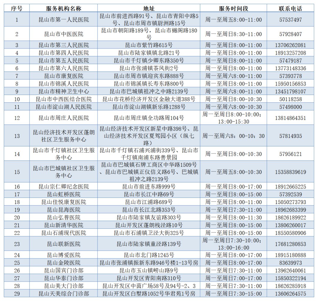 疫情期间昆山市首批招工体检服务机构名单