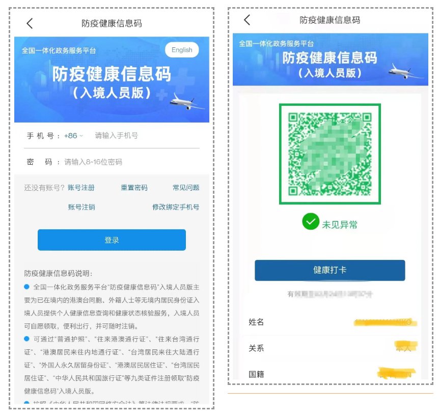2、港澳台同胞专区入口:点击后将跳转到全国“防疫健康信息码”