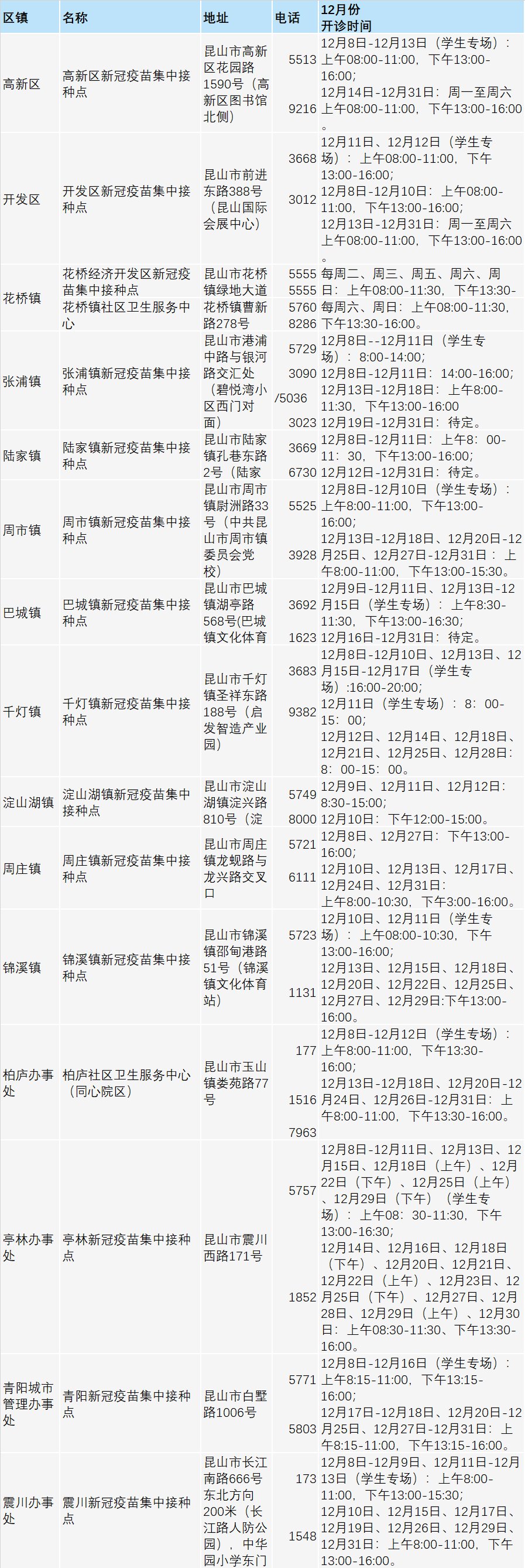12月份,我市这些新冠疫苗接种点开诊。目前我市新冠疫苗供应充足,请尚未接种新冠疫苗的3岁及以上(包括非本地户籍)的市民朋友们尽快就近接种。