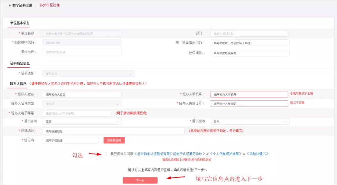 确认以上信息无误后勾选下方已阅读协议,进入下一步。