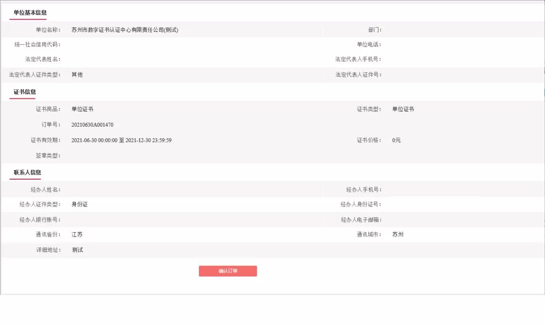 订单确认页面如下图,点击确认订单,进行证书下载。