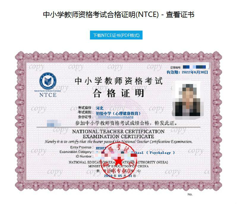 点击“下载NTCE证书”,即可下载到本地电脑。格式为PDF文件,需相应阅读器打开,即可打印。
