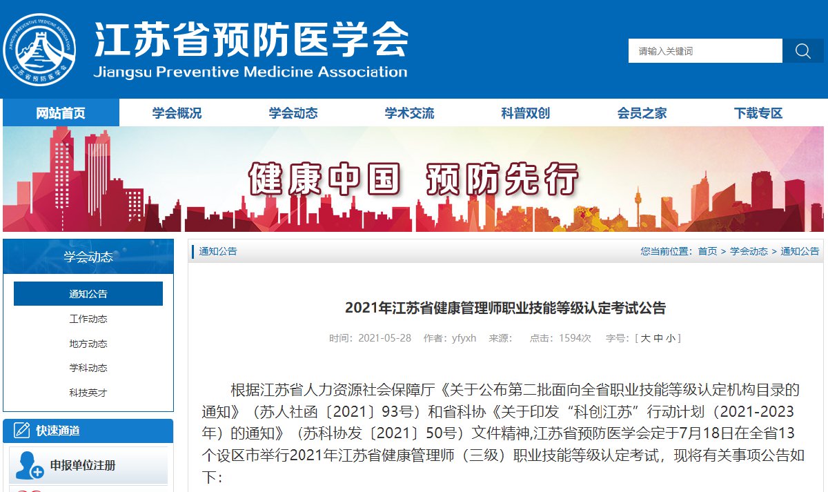 2021年苏州健康管理师考试时间(苏州健康管理师报名条件及时间)