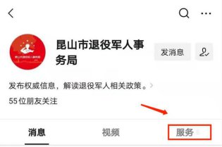 方法二:关注“昆山市退役军人事务局”公众号
