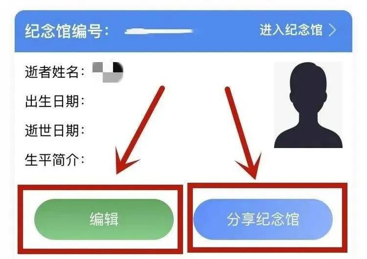 10、如果要修改逝者信息请先点击首页下方“我的”然后再点击“纪念馆”即可进行修改,点击“分享纪念馆”邀请亲友共同祭扫。