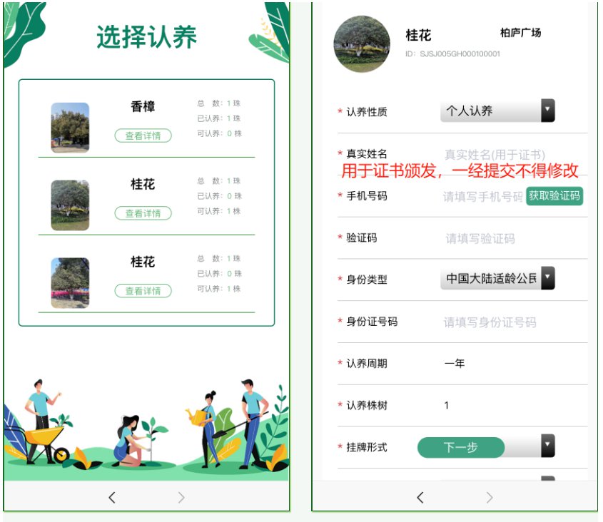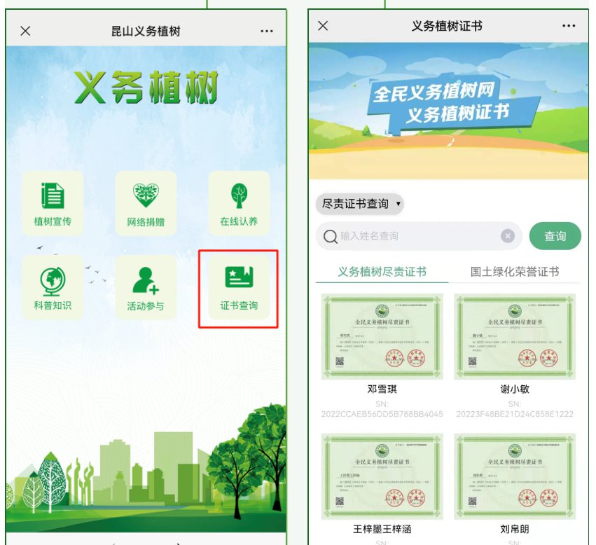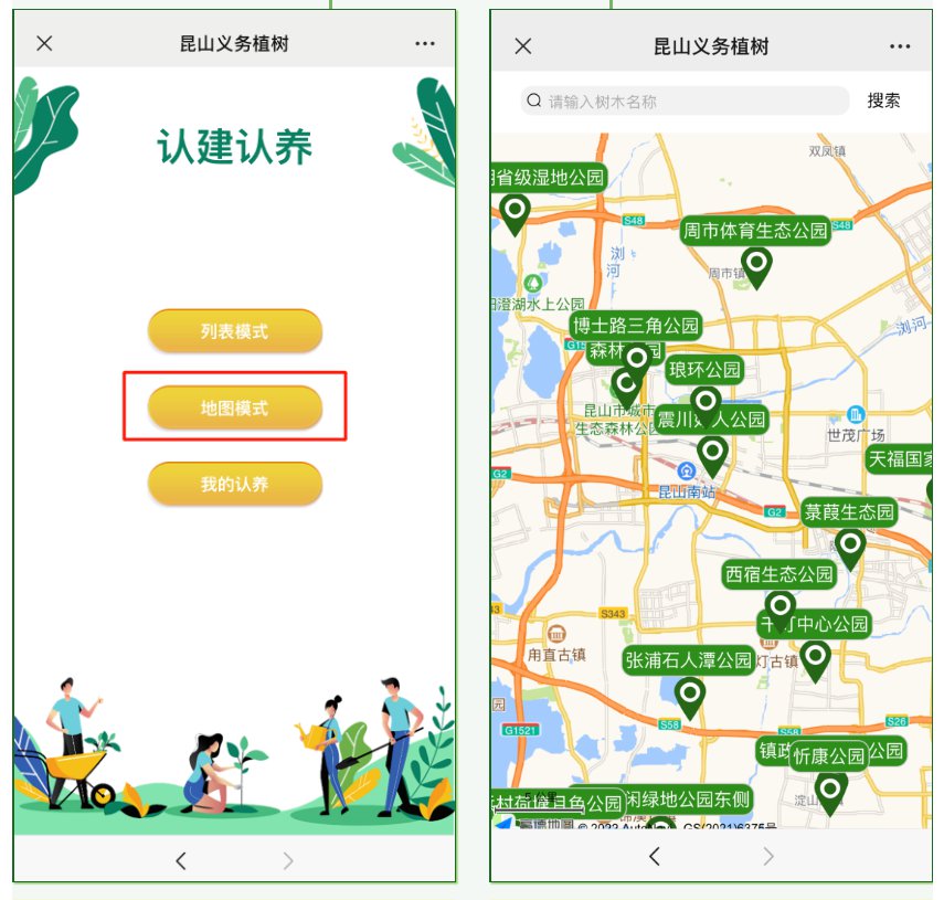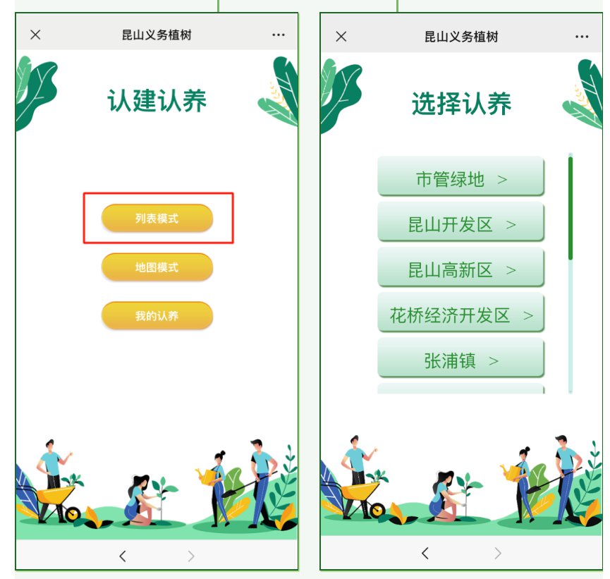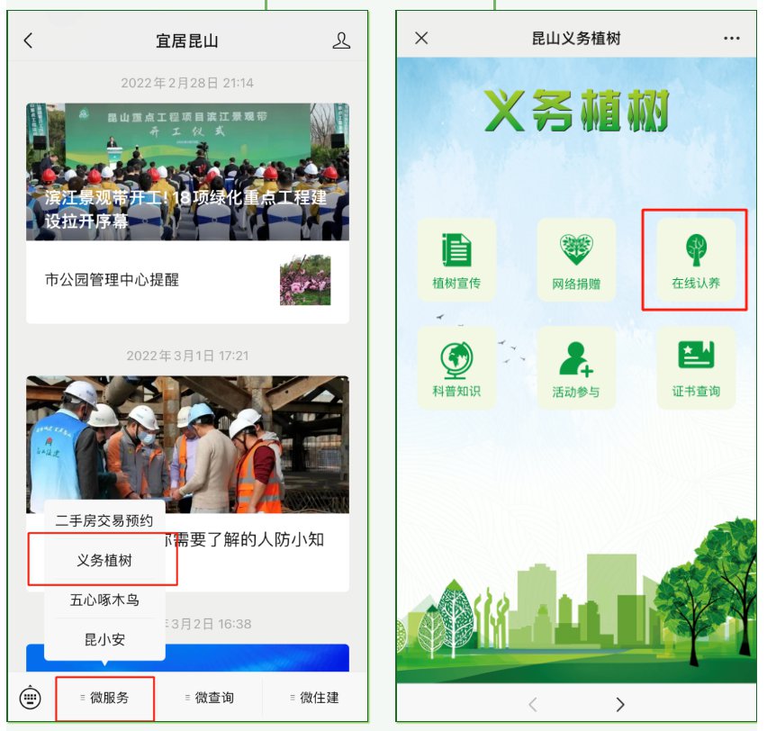 通过“宜居昆山”微信公众号进入“微服务—义务植树”