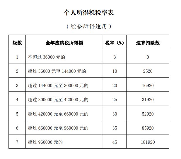 苏州个税汇算清缴公式+个人所得税税率表
