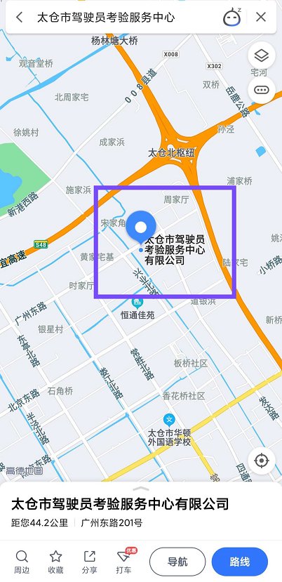 可以在地图上导航搜索“太仓市驾驶员考验服务中心”。