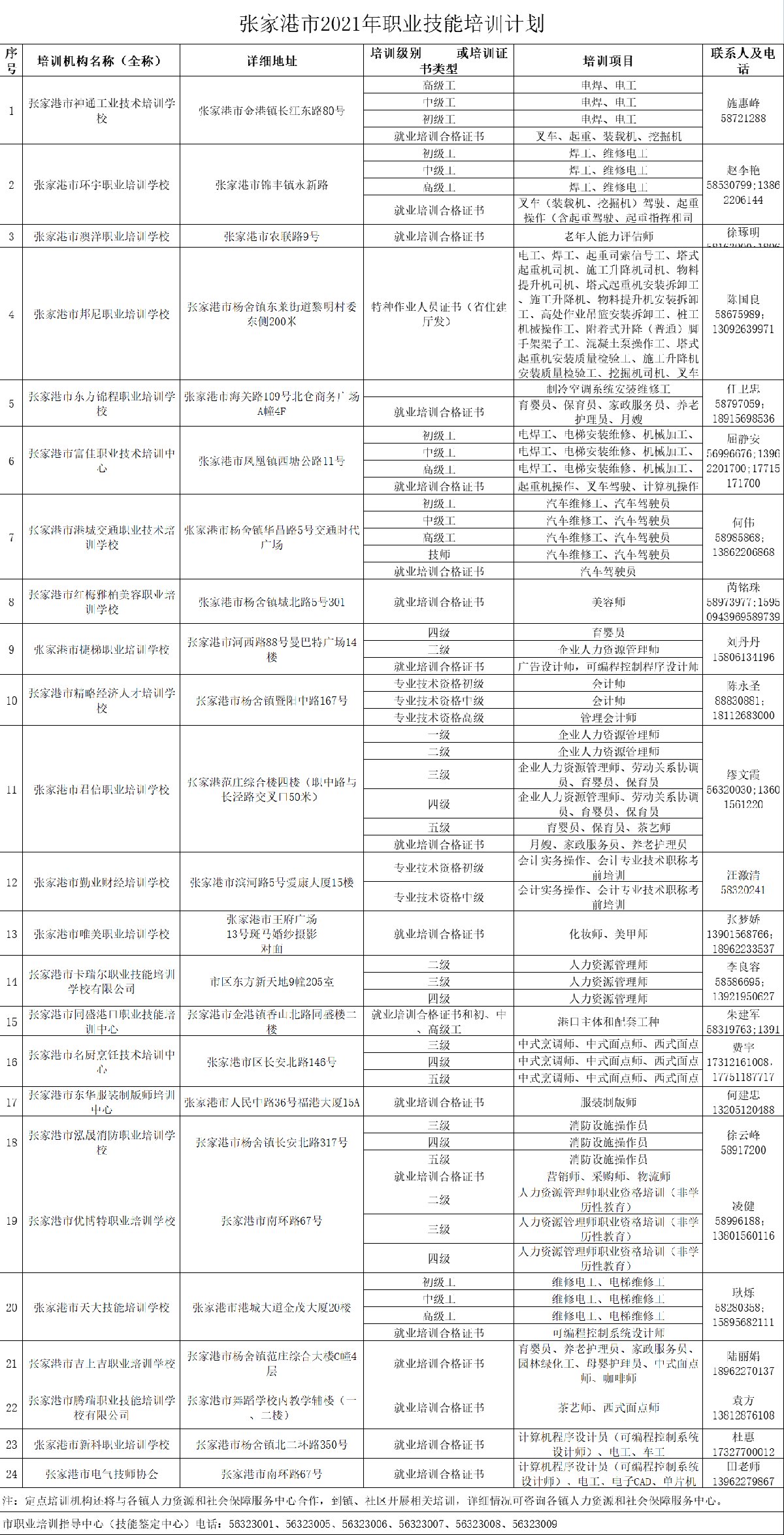 2021年张家港职业技能培训计划(张家港技能培训中心)