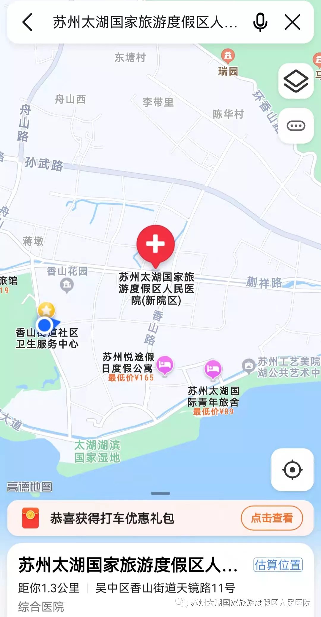 一、医院新址:苏州太湖国家旅游度假区天镜路11号