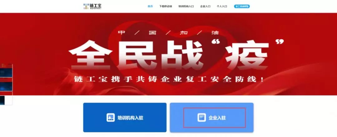 3. 登录完成,进入链工宝APP首页,点击“企业入驻”模块。