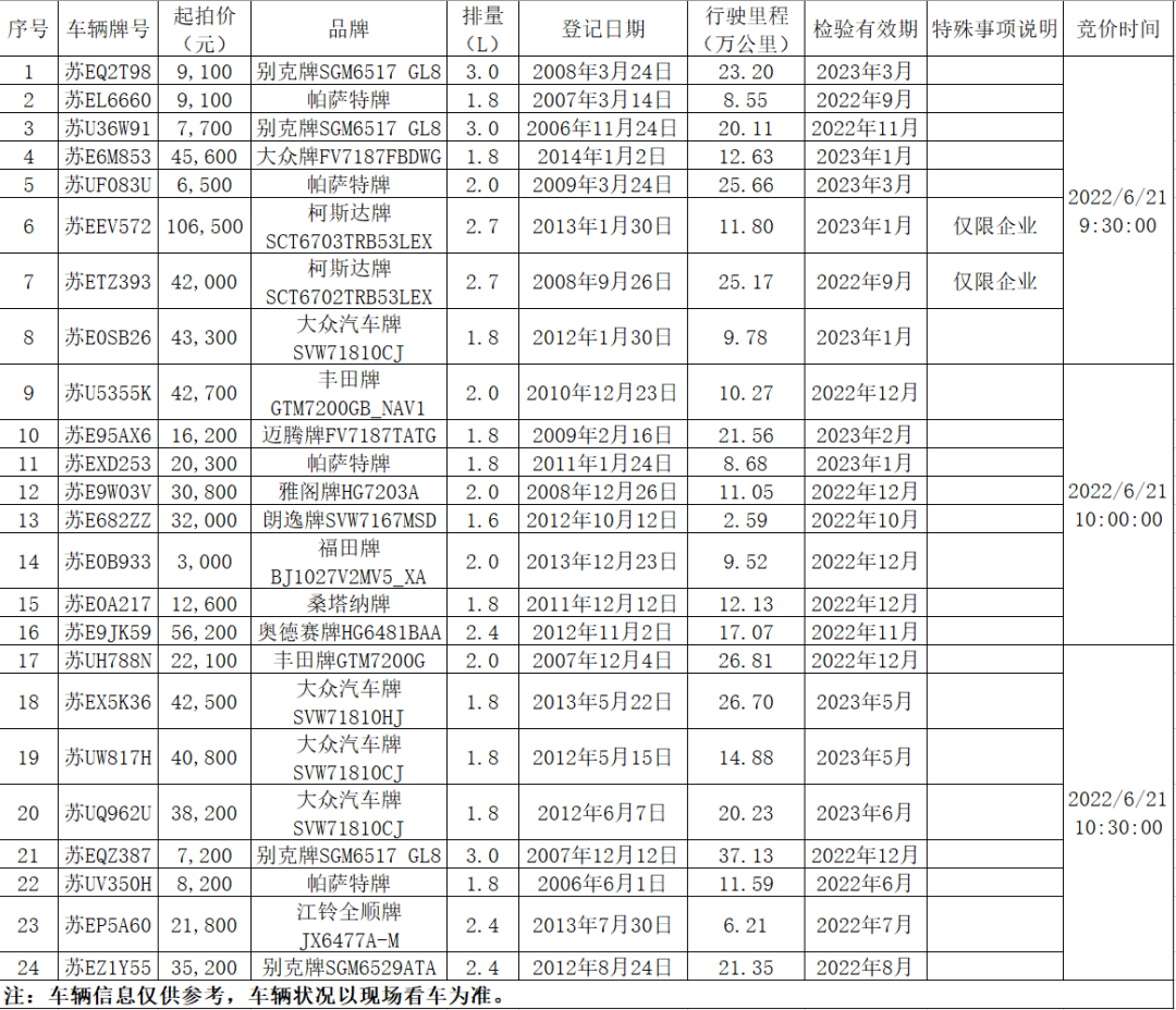 苏州公车拍卖最新车辆详情 苏州市汽车拍卖