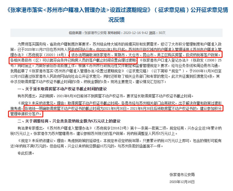 2021年取消张家港市、常熟市、太仓市、昆山市、吴江区购买房屋、投资纳税等落户政策。
