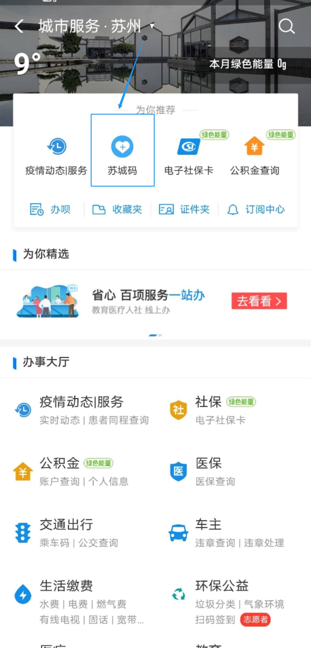 进入“苏城通”界面,点击“苏城码”即可查看