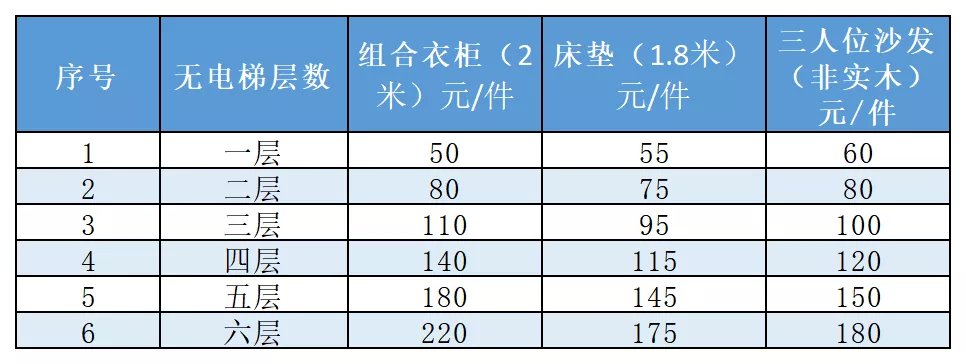 2、若物品需拆解后搬运需另外收取30元/件的拆解费。