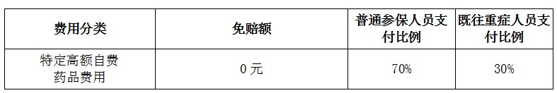 苏惠保特定高额自费药品费用责任无免赔额要求。保险期间内, 被保险人经指定专科医生开具处方,在指定医疗机构或指定药店 购买符合《苏惠保特定高额自费药品目录》支付范围的药品费用, 保险公司给付该项责任保险金。支付比例如下: