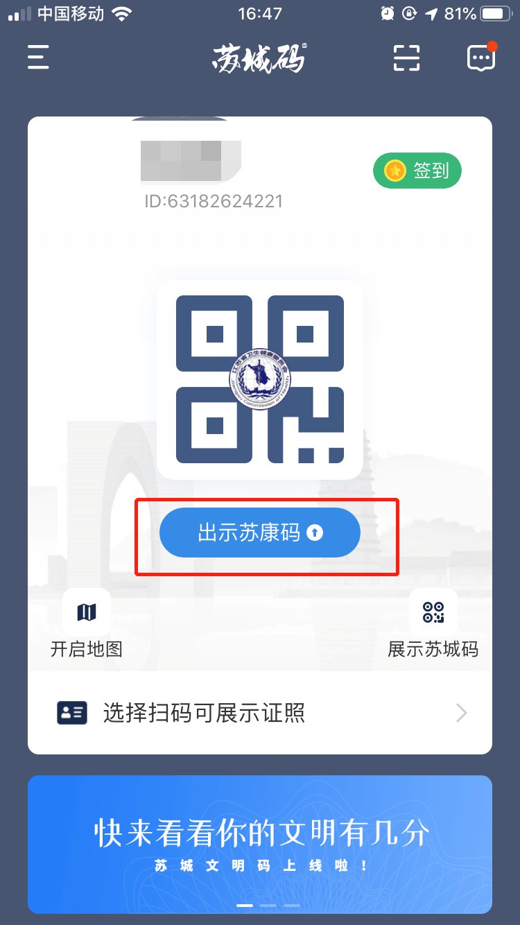 1、进入苏城码app,点击“出示苏康码”
