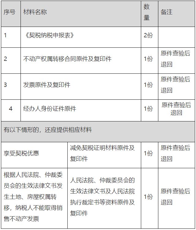 7.购买新建商品房的纳税人,因销售新建商品房的房地产开发企业已办理注销税务登记或者被税务机关列为非正常户等原因不能取得销售不动产发票的,可在税务机关核实有关情况后办理契税纳税申报。