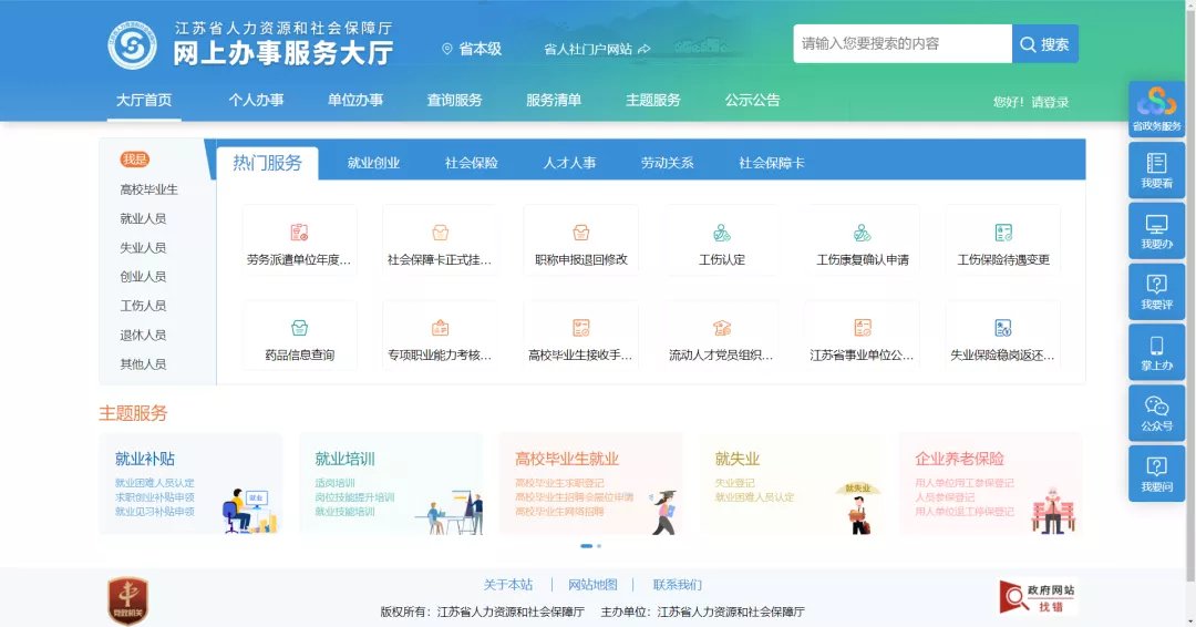 https://rs.jshrss.jiangsu.gov.cn/即可看到网办大厅界面,