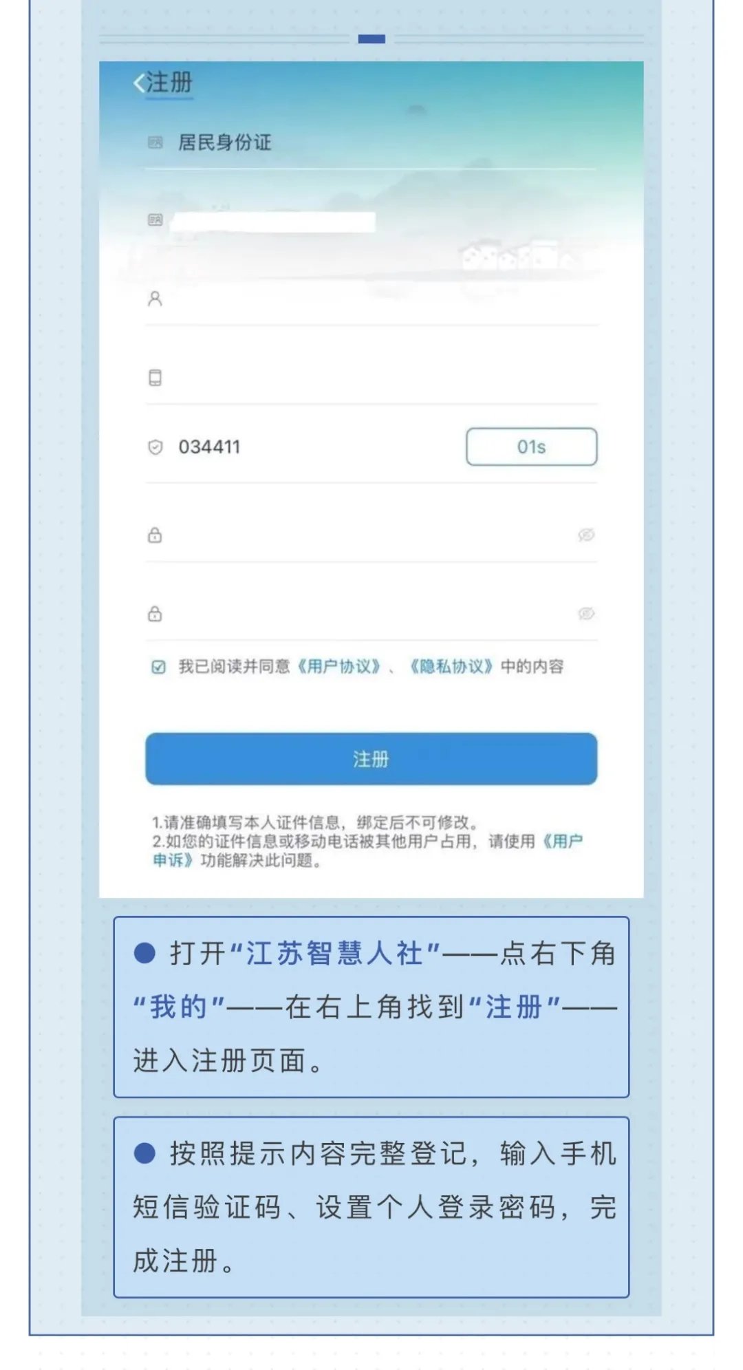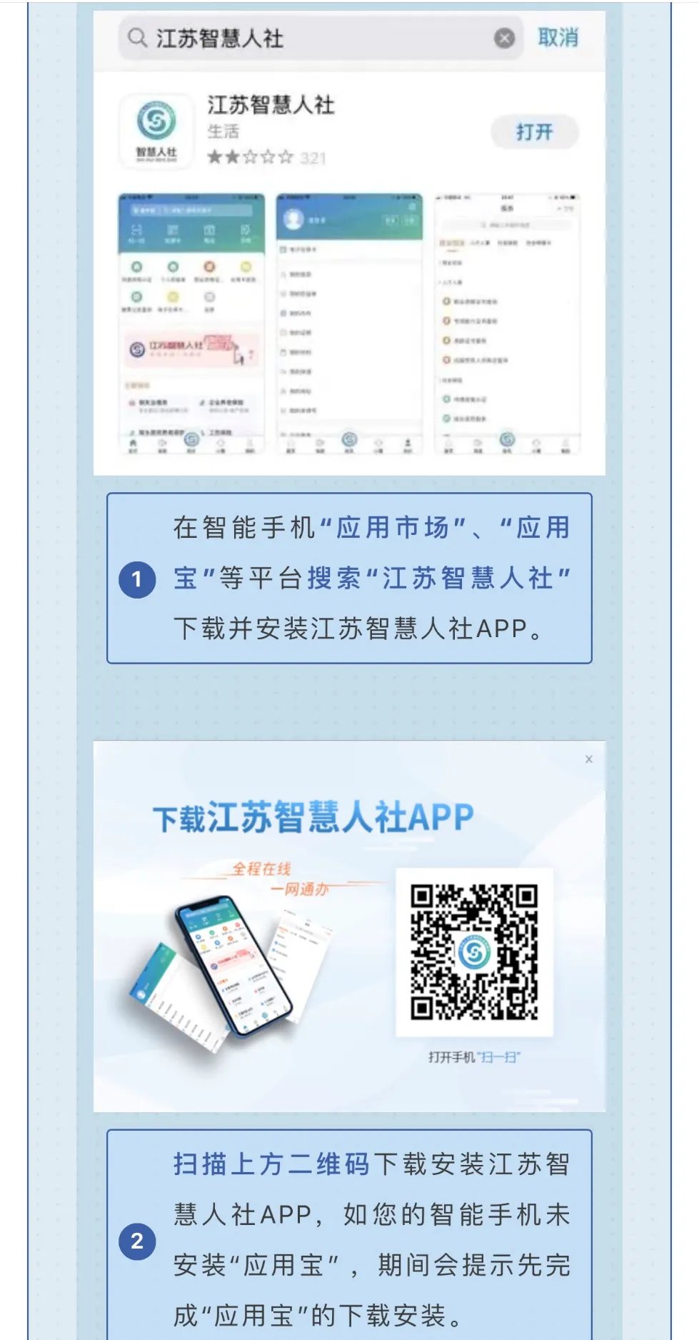 请大家提前下载并注册好“江苏智慧人社”APP,以免出现部分功能无法使用的情况。
