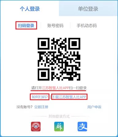 个人登录网办大厅(https://rs.jshrss.jiangsu.gov.cn)支持扫码登录、账号密码登录、手机动态码登录以及电子社保卡、江苏政务、支付宝登录。