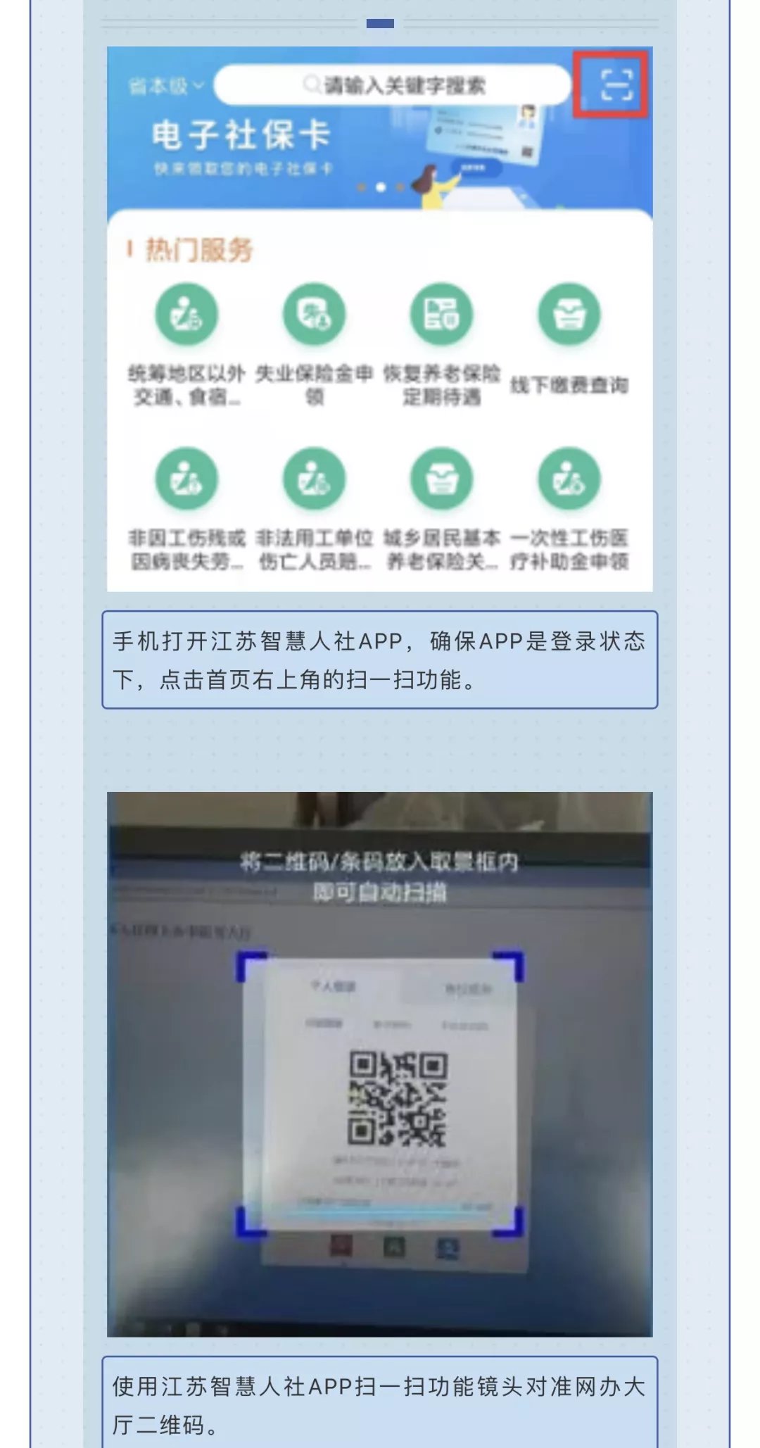 使用任何渠道签发的电子社保卡扫网办大厅上的二维码进行登录。