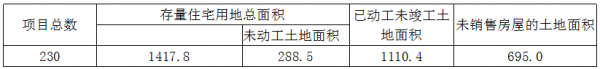 | 序号 | 区县 | 项目名称 | 位置 | 住宅类型 | 土地面积 | 建设状态 | 未销售房屋的土地面积 |
