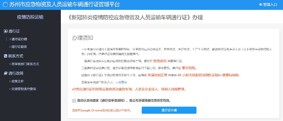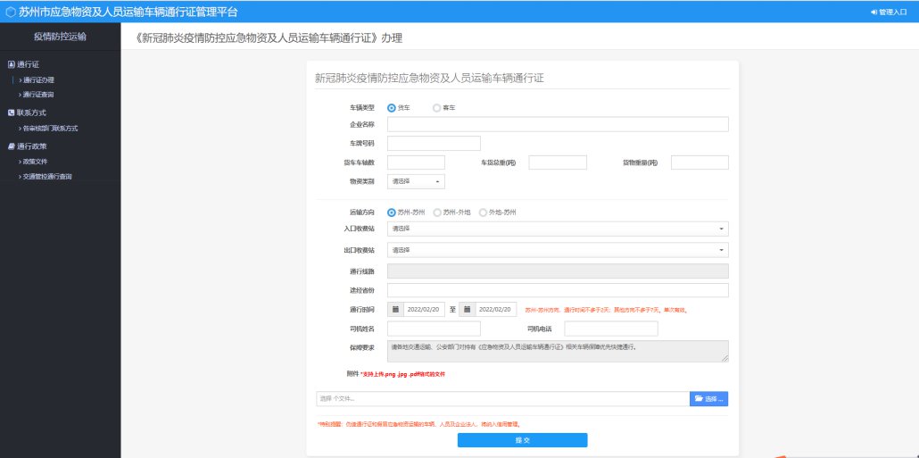苏州疫情应急物资及人员运输车辆通行证申请指南