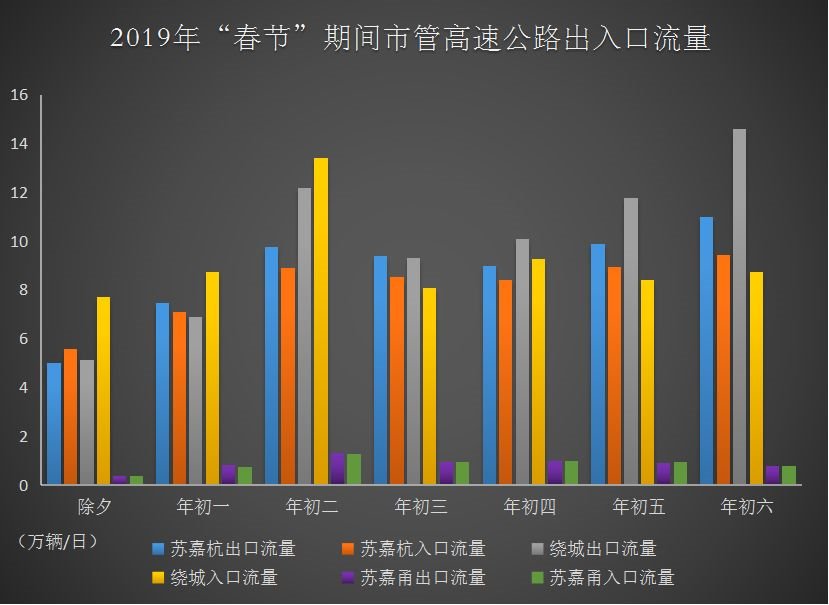 苏嘉甬高速出入口流量最高出现在2月6日(年初二)。