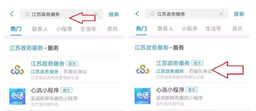 1.在“支付宝”首页搜索“江苏政务服务”。