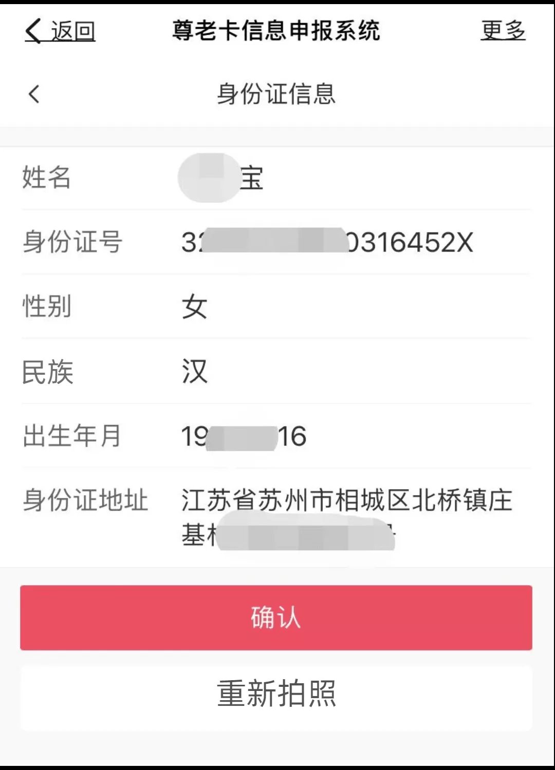 通过对身份证拍照系统自动捕捉个人信息,不需要再手动输入看一下身份信息,没有问题就点“确认”如果录入的信息不对,就点“重新拍照”。